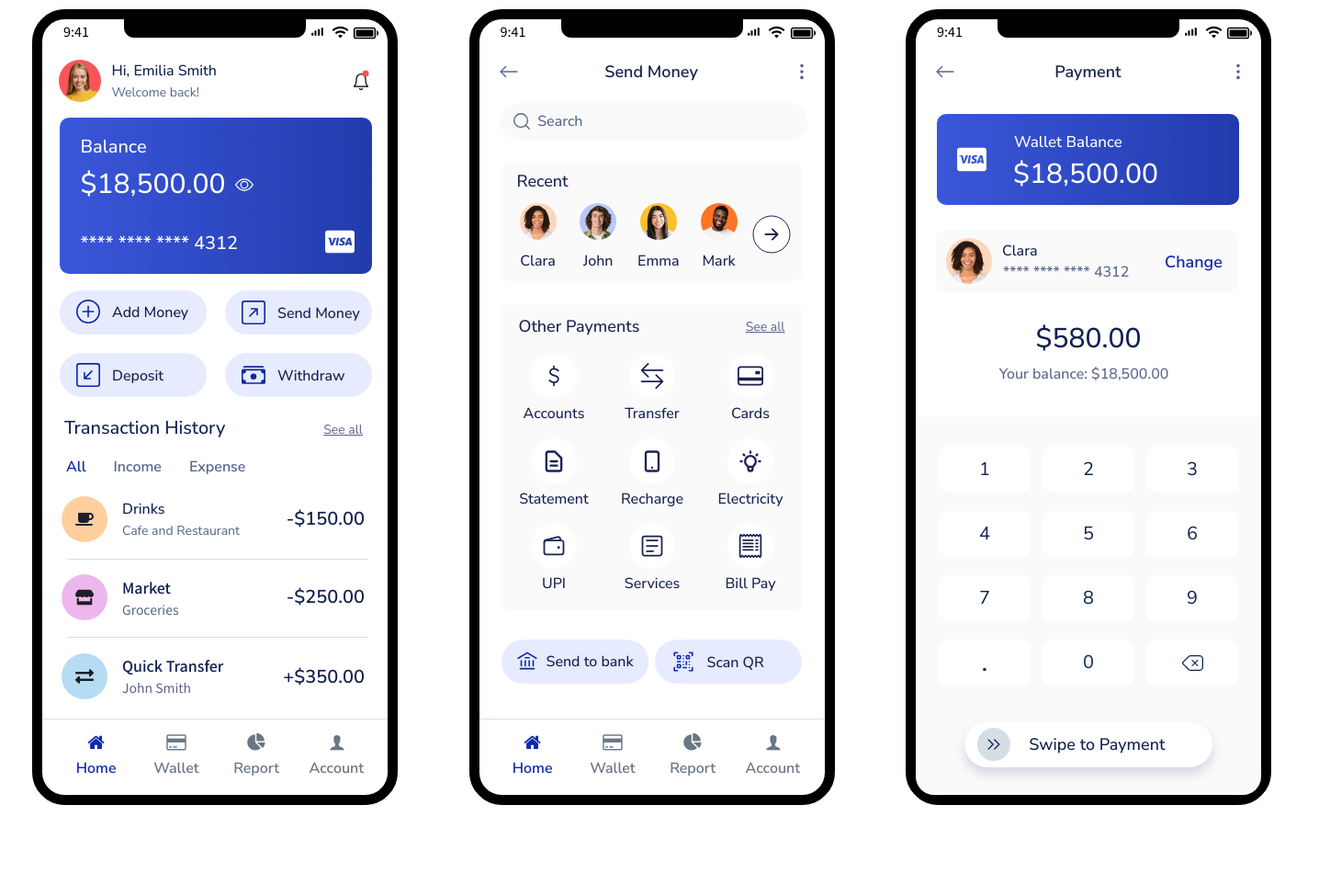 Send/receive funds via UPI, NEFT, IMPS, QR code