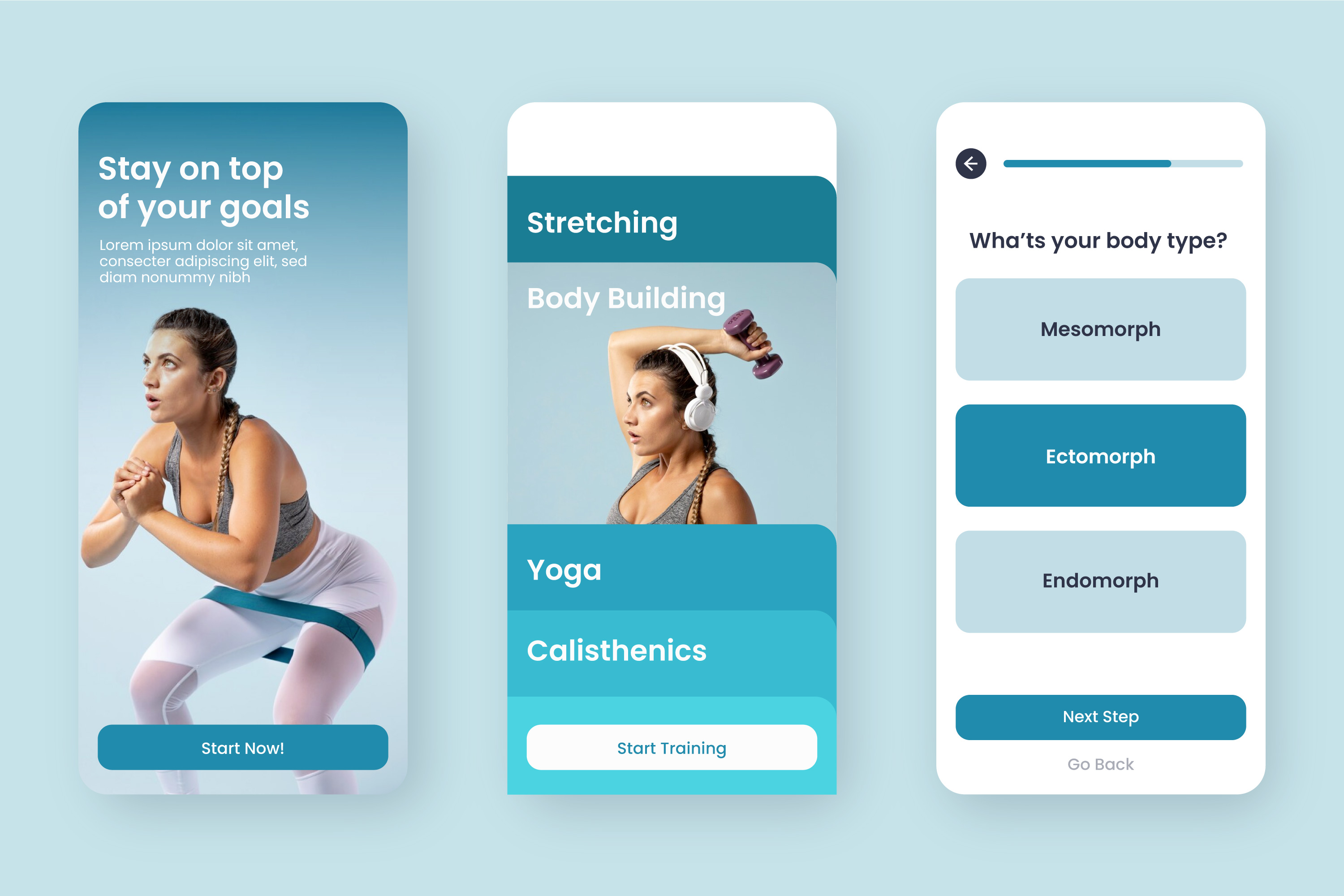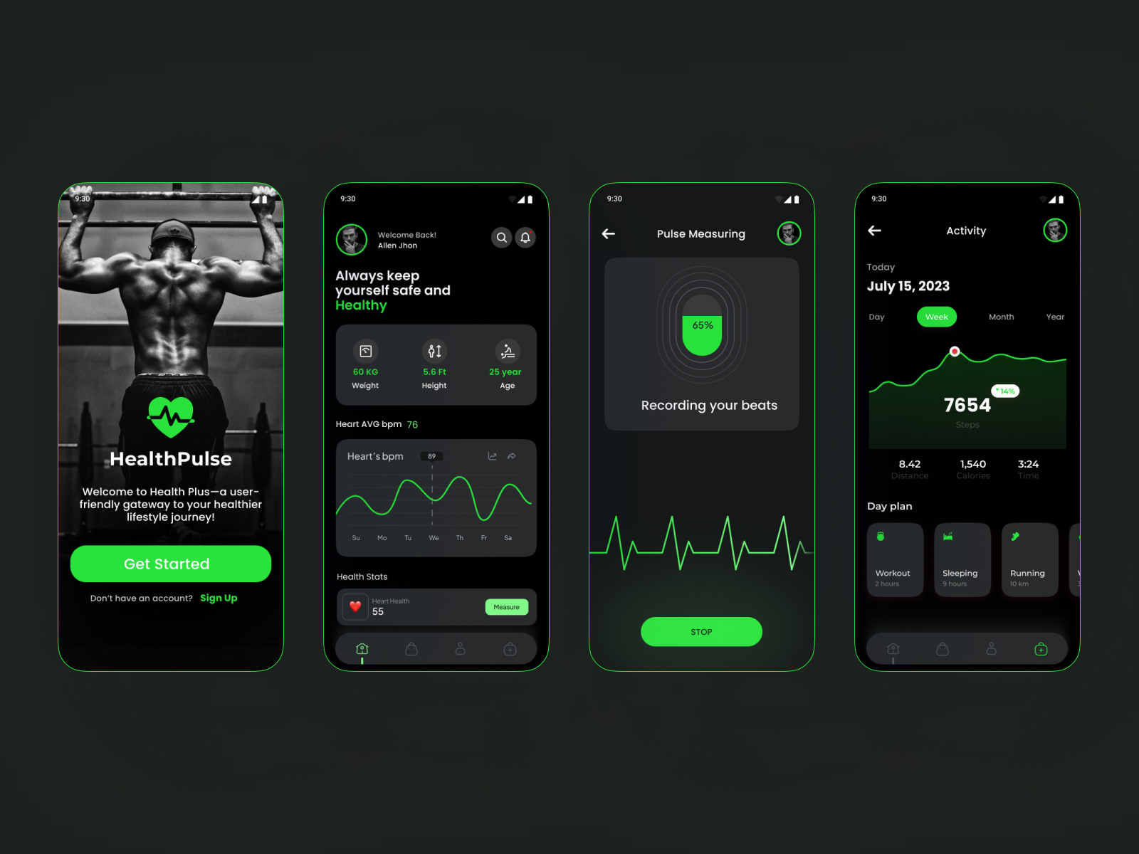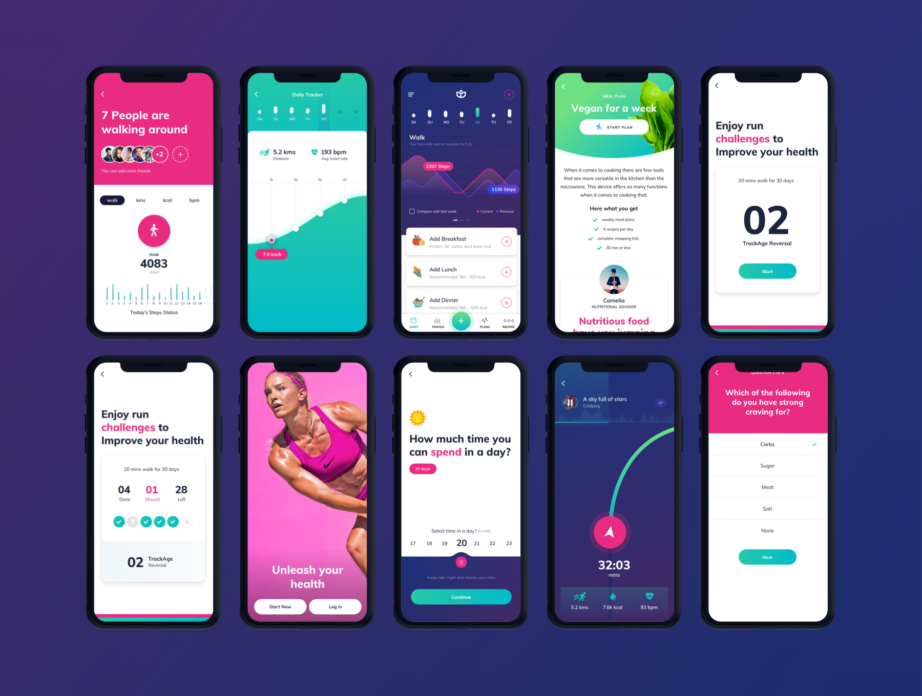 Signup/login, basic health info, fitness goals
